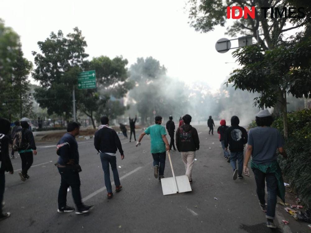 Bandung, IDN Times - Massa aksi yang berada di depan gedung DPRD Jawa Barat (Jabar) mulai berusaha menerobos masuk ke halaman depan gedung. Teriakan agar gerbang dibuka pun menggelora, membikin ricuh suasana.