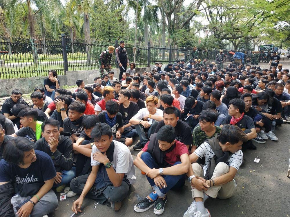 1. Kepolisian mengumpulkan pelajar yang berhasil diamankan