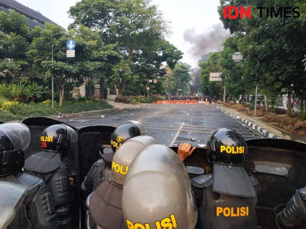 Dipukul Mundur Polisi, Massa Aksi di Bandung Bakar Pembatas Jalan