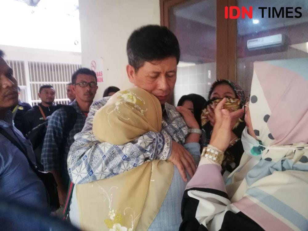 Bandung, IDN Times - Tangisan tiba-tiba pecah di ruang sidang, ketika majelis hakim Pengadilan Negeri Bandung membacakan vonis atas terdakwa eks Kepala Lembaga Pemasyarakatan (Lapas) Sukamiskin, Wahid Husein, Senin(8/4). Keluarga Wahid menangis tersedu-sedu, mendengar hakim memutuskan hukuman 8 tahun penjara pada Wahid.