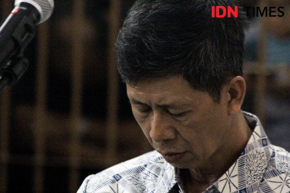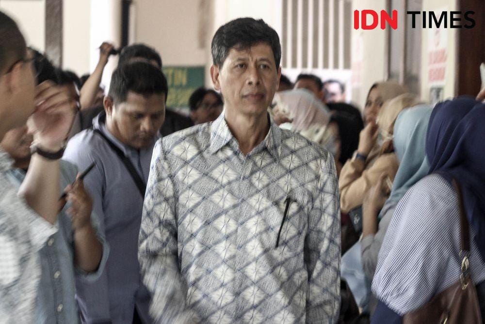 1. Persidangan vonis Wahid semestinya sudah digelar sejak pukul 10.00 WIB, Senin (8/4). Namun, karena beberapa alasan, persidangan baru dimulai pada pukul 15.00 WIB. Terdakwa menggunakan batik berwarna putih dan langsung duduk di tengah persidangan setelah jaksa memanggil namanya.